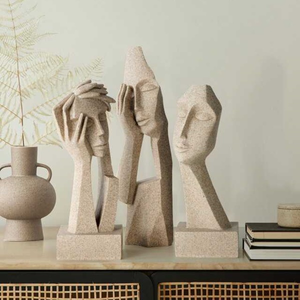 Dodaj wyjątkowego charakteru swojemu wnętrzu dzięki figurce dekoracyjnej w kształcie twarzy o geometrycznych liniach. Połączenie żywicy poliestrowej i kamionki zapewnia jej trwałość i unikalny wygląd. To nowoczesny akcent, który sprawdzi się zarówno jako ozdoba półki, komody, jak i designerski detal w biurze.