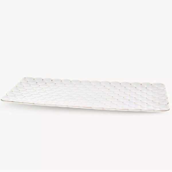 Patera dekoracyjna BELIA to elegancki i wyrafinowany element dekoracyjny, który doda blasku każdemu wnętrzu. Jej powierzchnia ozdobiona jest delikatnym, wypukłym wzorem, który nadaje jej wyjątkowej tekstury i artystycznego charakteru. Brzegi patery subtelnie cieniowane złotym kolorem tworzą efekt przejścia od głębi do jasności, dodając całości luksusowego wykończenia. Idealna do wyeksponowania świec czy innych dekoracji, patera stanowi zarówno funkcjonalny, jak i stylowy dodatek do salonu, jadalni czy kuchni.