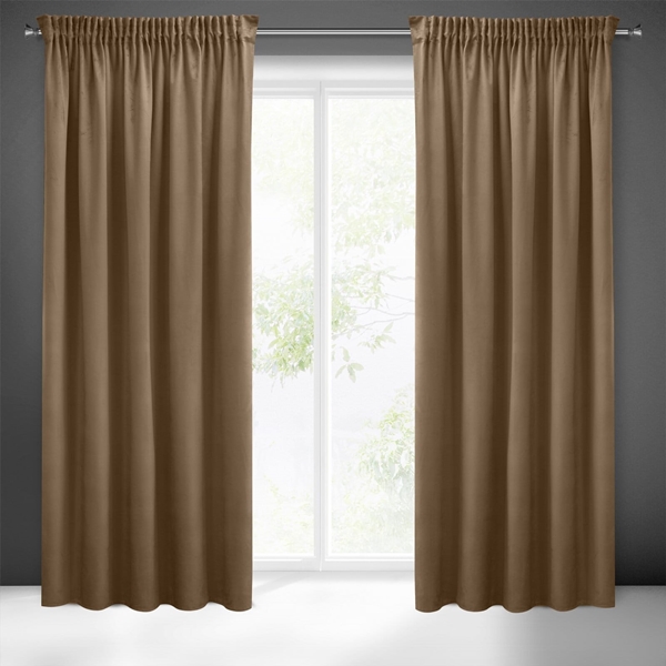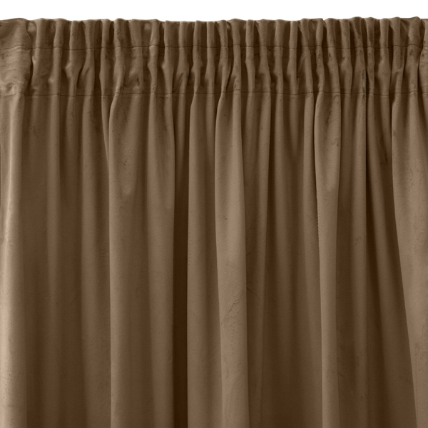 Luksusowa zasłona z kolekcji PIERRE CARDIN została uszyta z welwetu – grubszej, mięsistej tkaniny o aksamitnej miękkości. Elegancka tkanina wizualnie ociepla wnętrze, subtelnie osłaniając okno, dzięki czemu nie przepuszcza zbyt wiele światła słonecznego, zapewniając tym samym przyjemny klimat we wnętrzu.